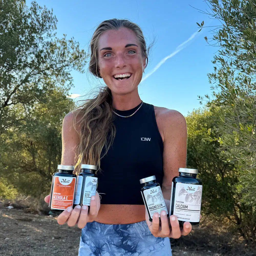 Løbepakke Sissel x Nani består af vores Calcium fra rødalger, Magnesium fra søsalat, Acerola C C vitamin tilskud fra hele bær, samt vores Ubiquinol Q10 på sin aktive form. Denne bundle er skræddersyet til løbere, hvorfor du bør run, not walk for at få fingrene i den!