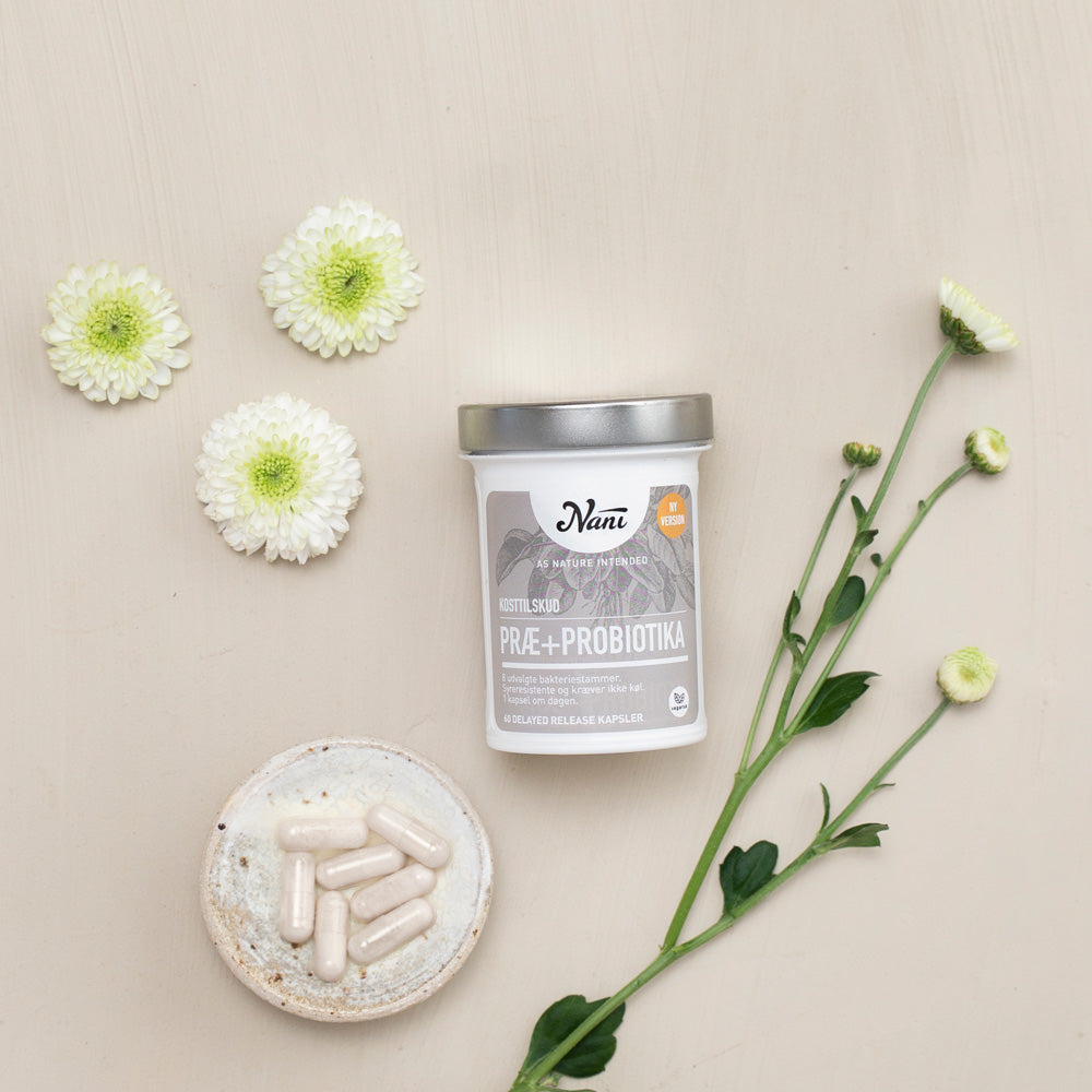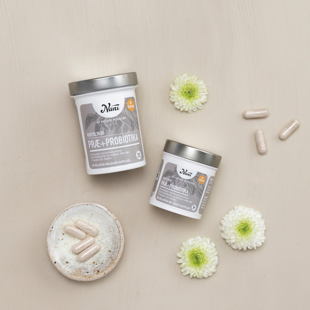 Vores nye og forbedrede Præ+Probiotika består af 8 nøje udvalgte stammer. Hver kapsel indeholder desuden hele 5 mia. levedygtige bakterier pr. kapsel, hvor flere af stammerne er HOWARU®-signaturstammer. Vi har desuden lagt mælkesyrebakterierne i en base akaciefibre og baobabfrugtkød, i stedet for FOS-inulin. Den nye Præ+Probiotika ligger stadig i en delayed release kapsel, som sikrer at mælkesyrebakterierne først frigives der, hvor de hører hjemme, nemlig tarmkanalen. Den nye emballage er specialdesignet til opbevaring af mælkesyrebakterier, da den er udviklet med CSP™-teknologi, som beskytter bakterierne effektivt mod fugt. Dette sikrer at bakterierne bevarer deres kvalitet og holdbarhed som minimum i 24 måneder - helt uden opbevaring på køl.